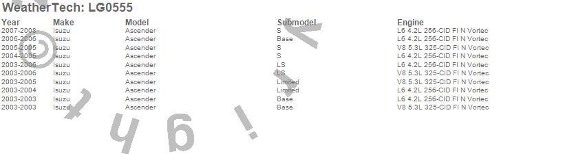 Below is an abbreviated list of applications for the LampGard.Ascender, Isuzu, 2008, 2007, 2006, 2005, 2004, 2003