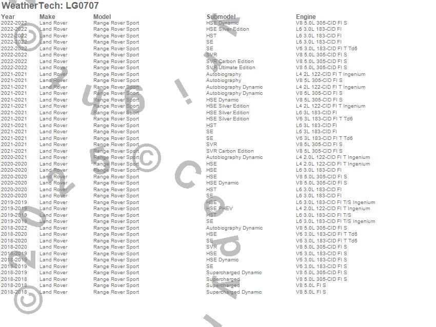 Below is an abbreviated list of applications for the LampGard.Range Rover Sport, Land Rover, 2022, 2021, 2020, 2019, 2018