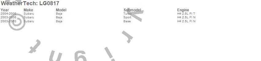 Below is an abbreviated list of applications for the LampGard.Baja, Subaru, 2006, 2005, 2004, 2003