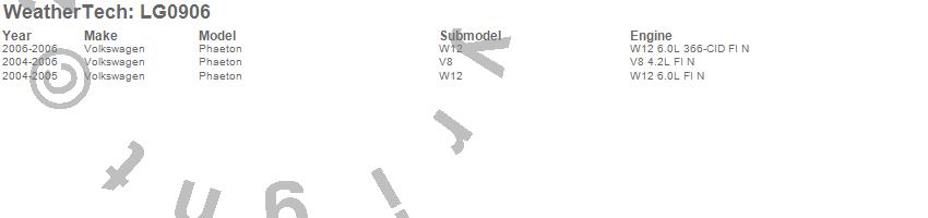 Below is an abbreviated list of applications for the LampGard.Phaeton, Volkswagen, 2006, 2005, 2004