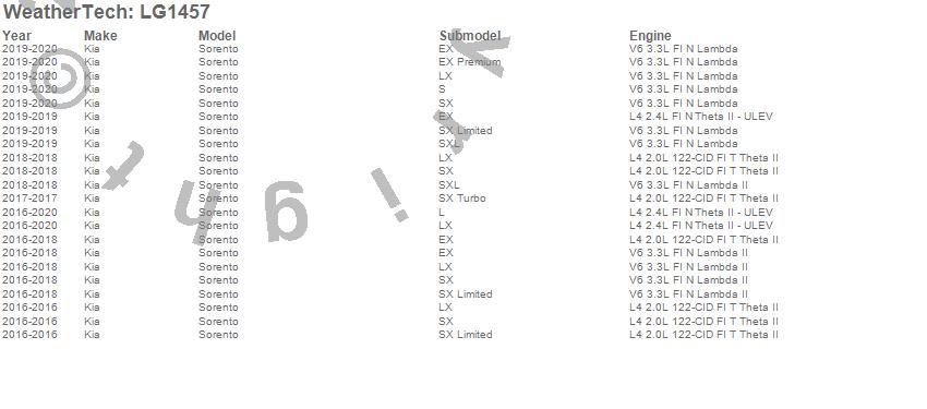Below is an abbreviated list of applications for the LampGard.Sorento, Kia, 2020, 2019, 2018, 2017, 2016