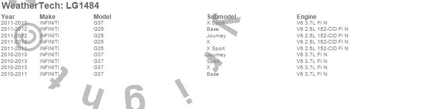 Below is an abbreviated list of applications for the LampGard.G25, G37, INFINITI, 2013, 2012, 2011, 2010