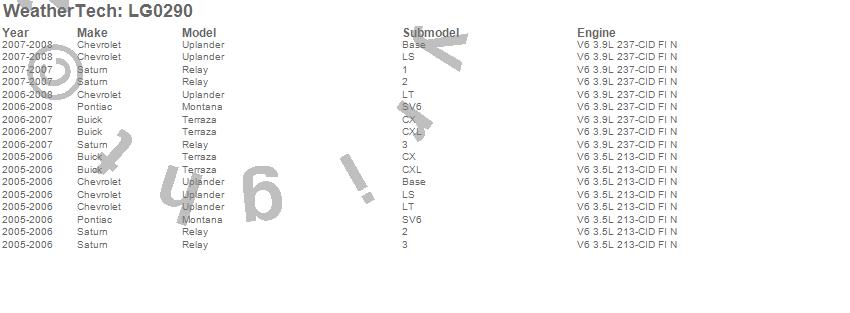 Below is an abbreviated list of applications for the LampGard.Montana, Relay, Terraza, Uplander, Buick, Chevrolet, Pontiac, Saturn, 2008, 2007, 2006, 2005