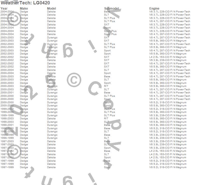 Below is an abbreviated list of applications for the LampGard.Dakota, Durango, Dodge, 2004, 2003, 2002, 2001, 2000, 1999, 1998, 1997