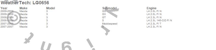 Below is an abbreviated list of applications for the LampGard.3, Mazda, 2009, 2008, 2007