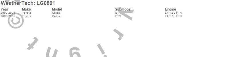 Below is an abbreviated list of applications for the LampGard.Celica, Toyota, 2005, 2004, 2003, 2002, 2001, 2000