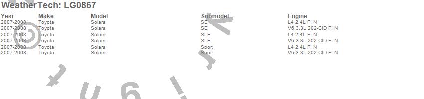 Below is an abbreviated list of applications for the LampGard.Solara, Toyota, 2008, 2007