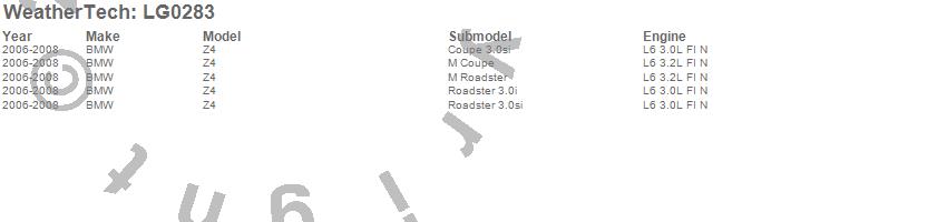 Below is an abbreviated list of applications for the LampGard.Z4, BMW, 2008, 2007, 2006