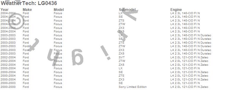 Below is an abbreviated list of applications for the LampGard.Focus, Ford, 2004, 2003, 2002, 2001, 2000