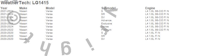 Below is an abbreviated list of applications for the LampGard.Versa, Nissan, 2025, 2024, 2023, 2022, 2021, 2020