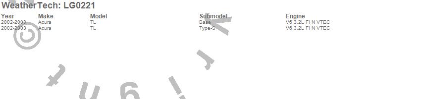 Below is an abbreviated list of applications for the LampGard.TL, Acura, 2003, 2002