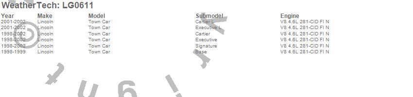 Below is an abbreviated list of applications for the LampGard.Town Car, Lincoln, 2002, 2001, 2000, 1999, 1998