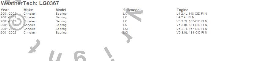 Below is an abbreviated list of applications for the LampGard.Sebring, Chrysler, 2002, 2001