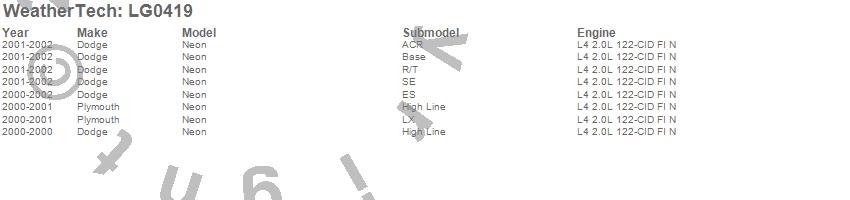 Below is an abbreviated list of applications for the LampGard.Neon, Dodge, Plymouth, 2002, 2001, 2000