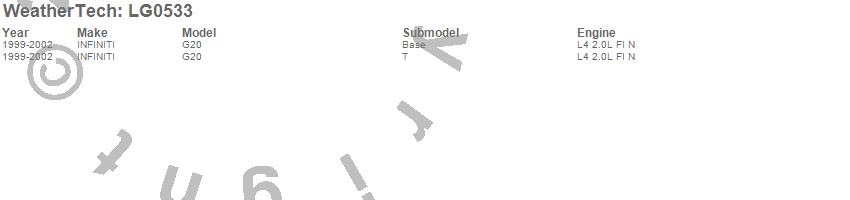 Below is an abbreviated list of applications for the LampGard.G20, INFINITI, 2002, 2001, 2000, 1999