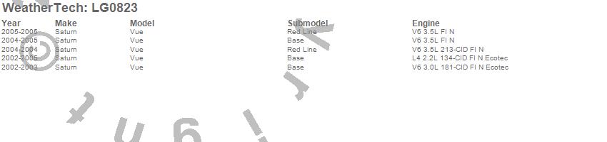 Below is an abbreviated list of applications for the LampGard.Vue, Saturn, 2005, 2004, 2003, 2002