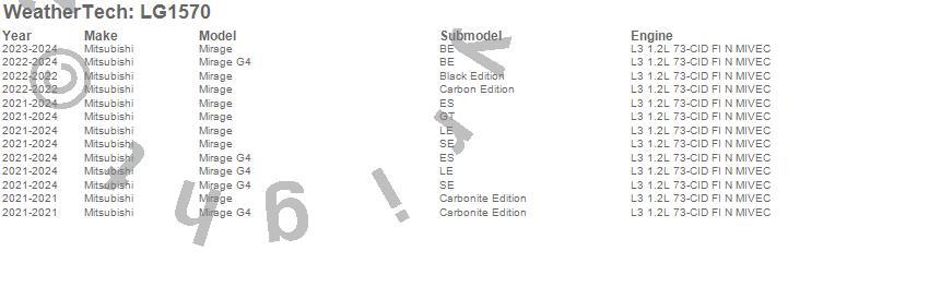 Below is an abbreviated list of applications for the LampGard.Mirage, Mirage G4, Mitsubishi, 2024, 2023, 2022, 2021