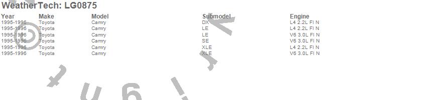 Below is an abbreviated list of applications for the LampGard.Camry, Toyota, 1996, 1995