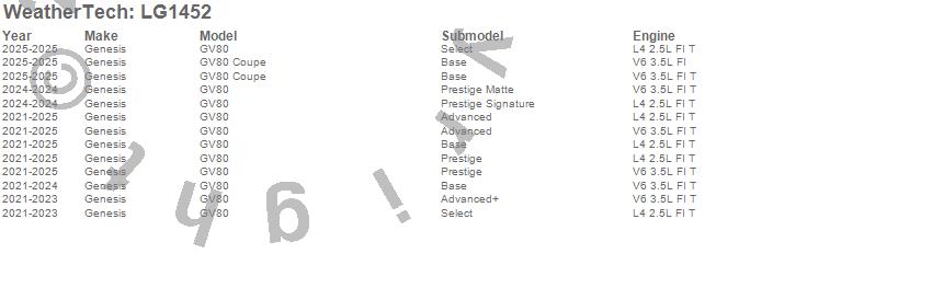 Below is an abbreviated list of applications for the LampGard.GV80, GV80 Coupe, Genesis, 2026, 2025, 2024, 2023, 2022, 2021