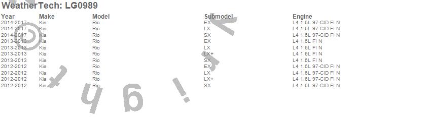 Below is an abbreviated list of applications for the LampGard.Rio, Kia, 2017, 2016, 2015, 2014, 2013, 2012