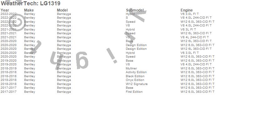 Below is an abbreviated list of applications for the LampGard.Bentayga, Bentley, 2022, 2021, 2020, 2019, 2018, 2017