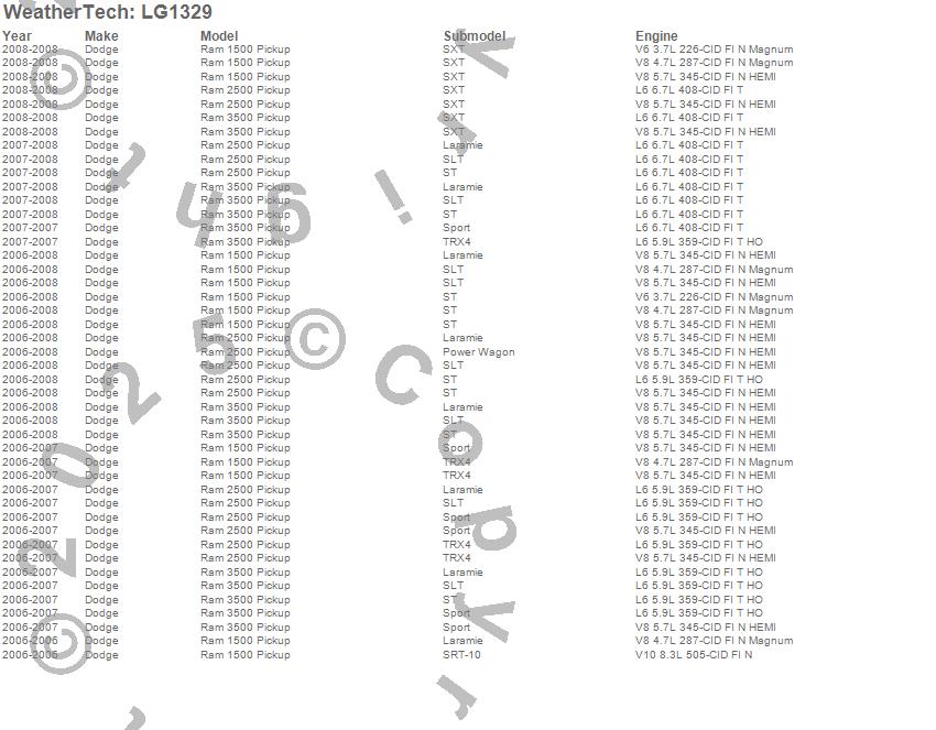 Below is an abbreviated list of applications for the LampGard.Ram 1500, Ram 2500, Ram 3500, Dodge, 2008, 2007, 2006