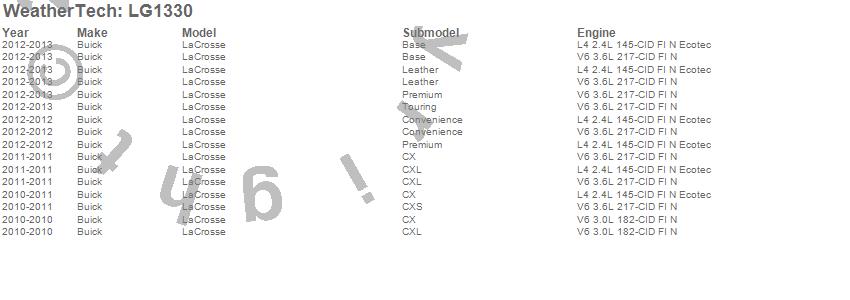 Below is an abbreviated list of applications for the LampGard.LaCrosse, Buick, 2013, 2012, 2011, 2010
