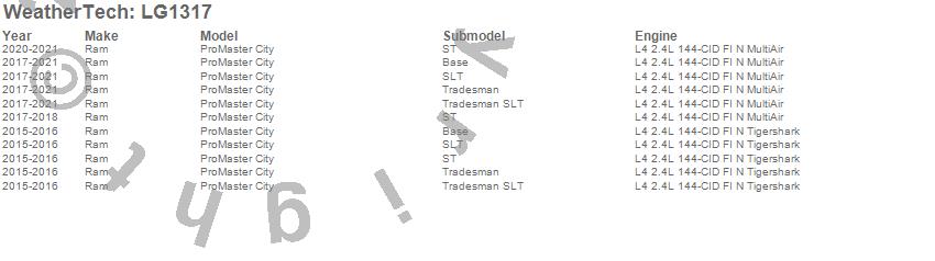Below is an abbreviated list of applications for the LampGard.ProMaster City, Ram, 2021, 2020, 2019, 2018, 2017, 2016, 2015