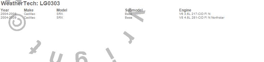Below is an abbreviated list of applications for the LampGard.SRX, Cadillac, 2009, 2008, 2007, 2006, 2005, 2004