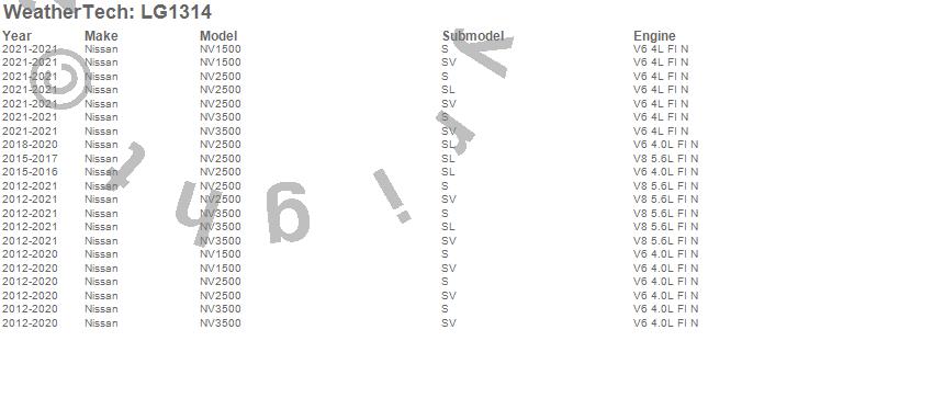 Below is an abbreviated list of applications for the LampGard.NV1500, NV2500, NV3500, Nissan, 2021, 2020, 2019, 2018, 2017, 2016, 2015, 2014, 2013, 2012