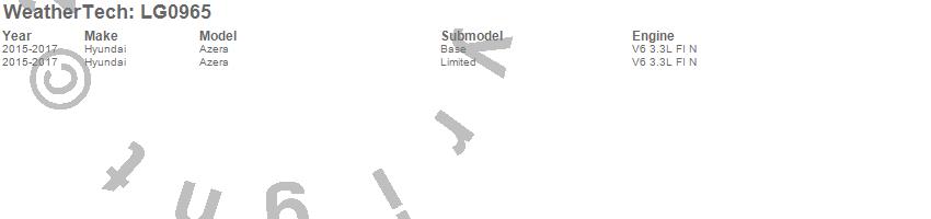 Below is an abbreviated list of applications for the LampGard.Azera, Hyundai, 2017, 2016, 2015