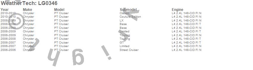 Below is an abbreviated list of applications for the LampGard.PT Cruiser, Chrysler, 2010, 2009, 2008, 2007, 2006