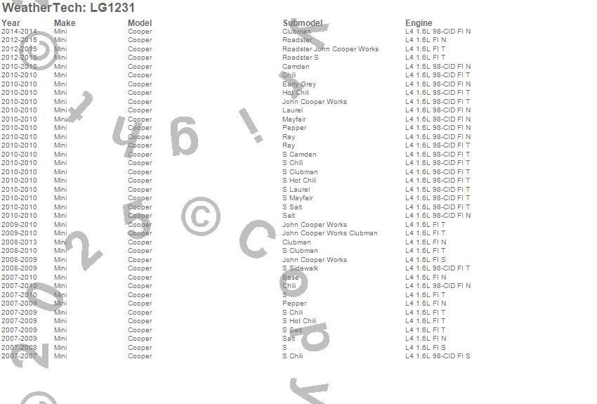 Below is an abbreviated list of applications for the LampGard.Cooper, Mini, 2015, 2014, 2013, 2012, 2011, 2010, 2009, 2008, 2007