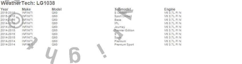 Below is an abbreviated list of applications for the LampGard.Q60, INFINITI, 2015, 2014