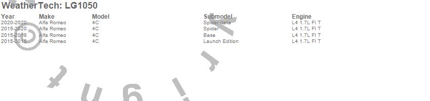 Below is an abbreviated list of applications for the LampGard.4C, Alfa Romeo, 2020, 2019, 2018, 2017, 2016, 2015