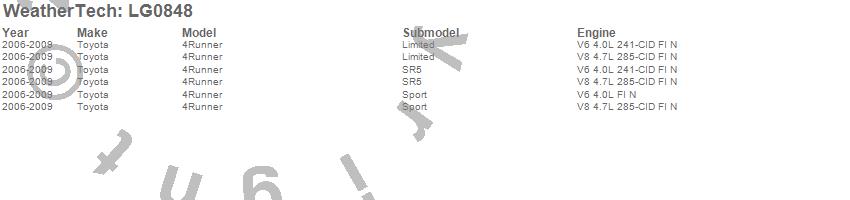 Below is an abbreviated list of applications for the LampGard.4Runner, Toyota, 2009, 2008, 2007, 2006