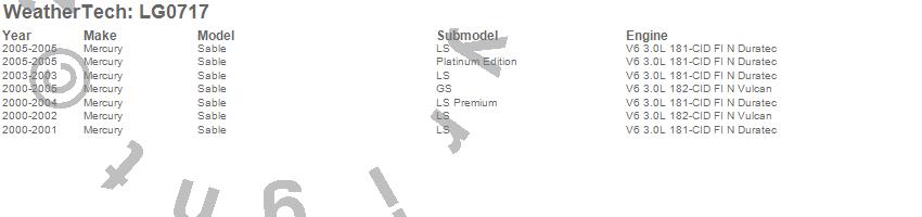 Below is an abbreviated list of applications for the LampGard.Sable, Mercury, 2005, 2004, 2003, 2002, 2001, 2000