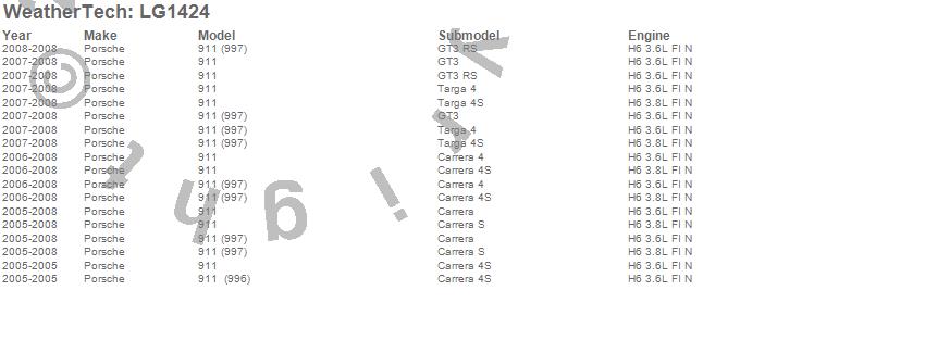 Below is an abbreviated list of applications for the LampGard.911, Porsche, 2008, 2007, 2006, 2005