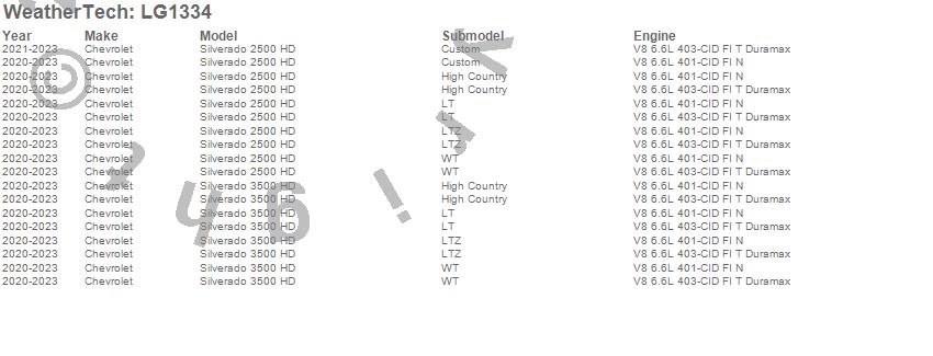 Below is an abbreviated list of applications for the LampGard.Silverado 2500 HD, Silverado 3500 HD, Chevrolet, 2023, 2022, 2021, 2020
