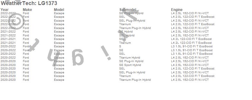 Below is an abbreviated list of applications for the LampGard.Escape, Ford, 2022, 2021, 2020