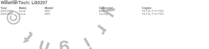 Below is an abbreviated list of applications for the LampGard.MDX, Acura, 2006, 2005, 2004