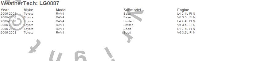 Below is an abbreviated list of applications for the LampGard.RAV4, Toyota, 2008, 2007, 2006