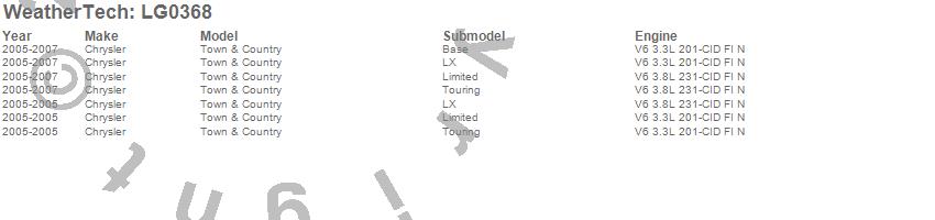 Below is an abbreviated list of applications for the LampGard.Town & Country, Chrysler, 2007, 2006, 2005