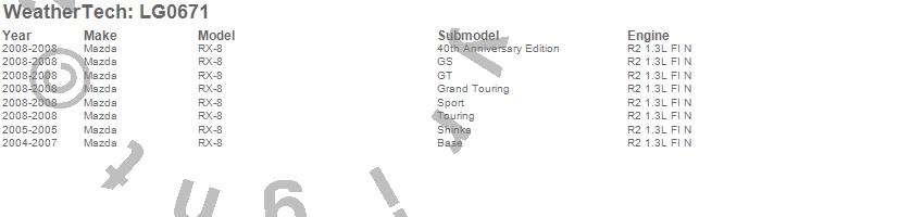 Below is an abbreviated list of applications for the LampGard.RX-8, Mazda, 2008, 2007, 2006, 2005, 2004