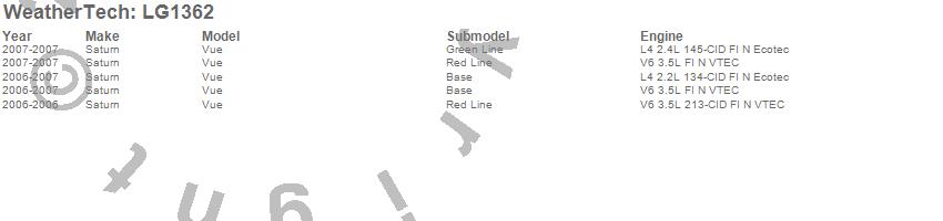 Below is an abbreviated list of applications for the LampGard.Vue, Saturn, 2007, 2006