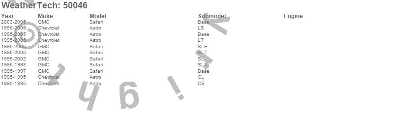 Below is an abbreviated list of applications for the Stone And Bug Deflector.Astro, Safari, Chevrolet, GMC, 2005, 2004, 2003, 2002, 2001, 2000, 1999, 1998, 1997, 1996, 1995