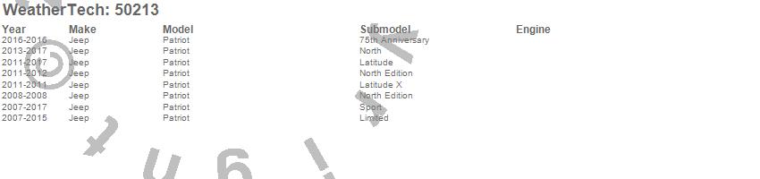Below is an abbreviated list of applications for the Stone And Bug Deflector.Patriot, Jeep, 2017, 2016, 2015, 2014, 2013, 2012, 2011, 2010, 2009, 2008, 2007