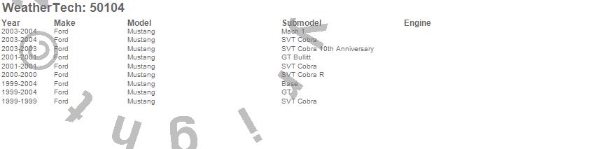 Below is an abbreviated list of applications for the Stone And Bug Deflector.Mustang, Ford, 2004, 2003, 2002, 2001, 2000, 1999