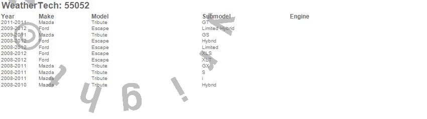 Below is an abbreviated list of applications for the Low Profile Aerodynamic Hood Protector.Escape, Tribute, Ford, Mazda, 2012, 2011, 2010, 2009, 2008