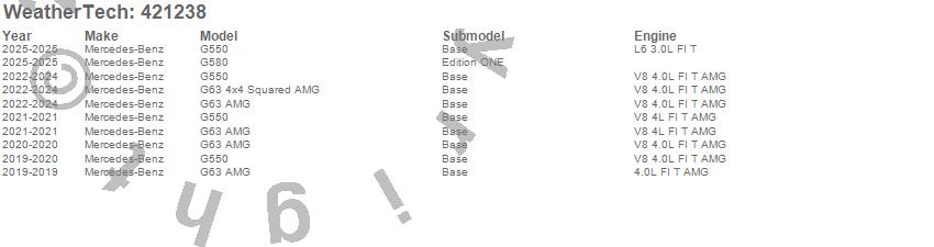 Below is an abbreviated list of applications for the Cargo Liner.G550, G580, G63 4x4 Squared AMG, G63 AMG, Mercedes-Benz, 2025, 2024, 2023, 2022, 2021, 2020, 2019